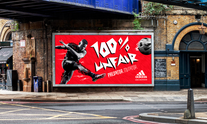 We crafted the art direction and copy guidelines for this campaign. Taking inspiration from the distinctive spikes of the Predator boots, we fashioned some unique assets, including a custom font, original illustrations, and captivating campaign photography. All these elements were thoughtfully compiled into a campaign playbook that found its way to over 40 countries.